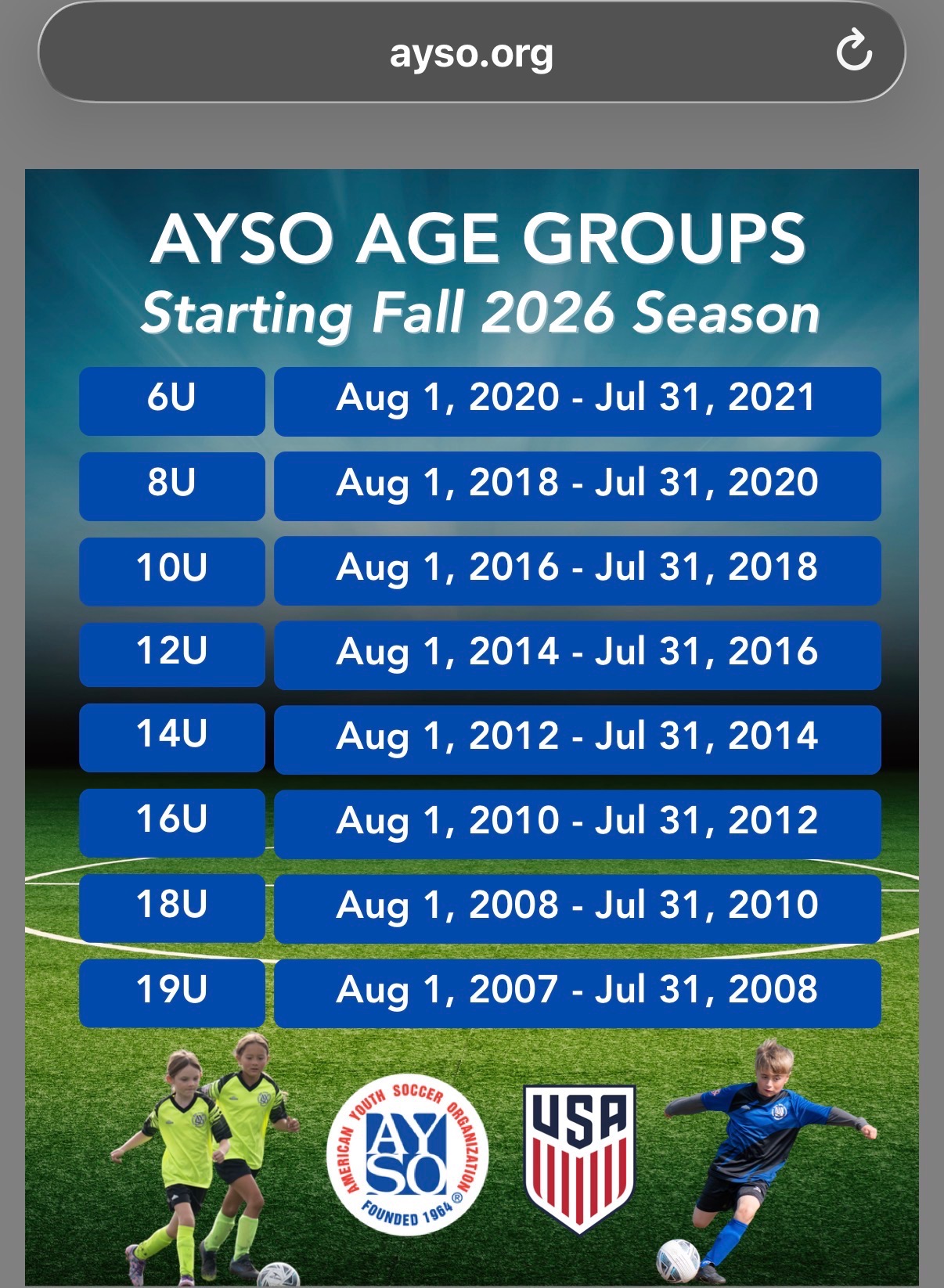Note: AYSO may increase roster sizes per the latest directives to reduce waitlists. Coaches will work to balance playing time assuming players consistently participate.